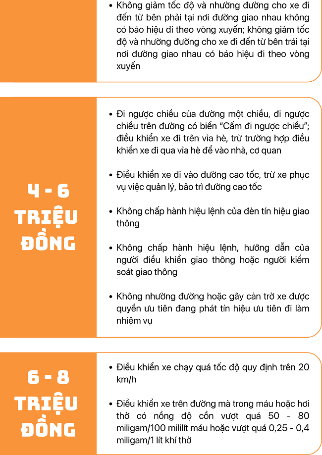 Một số mức xử phạt vi phạm quy tắc giao thông đường bộ đối với xe mô tô, xe gắn máy