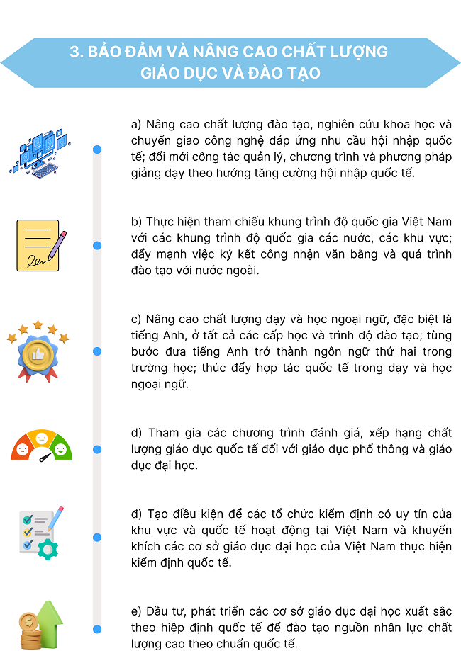Ngày 19/12/2024, Thủ tướng Chính phủ ban hành Quyết định số 1600/QĐ-TTg về phê duyệt Đề án Hội nhập quốc tế trong giáo dục và đào tạo đến năm 2030 với một số nhiệm vụ, giải pháp như sau: