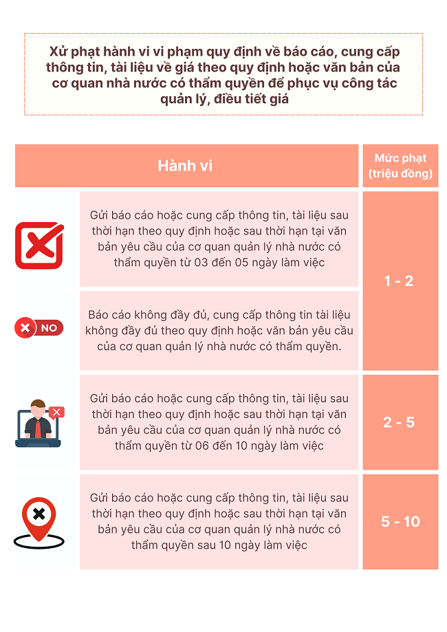 Ngày 12/7/2024, Chính phủ ban hành Nghị định số 87/2024/NĐ-CP về quy định xử phạt vi phạm hành chính trong quản lý giá, với một số quy định xử phạt tại điều 6, 7, 8 chương II như sau: