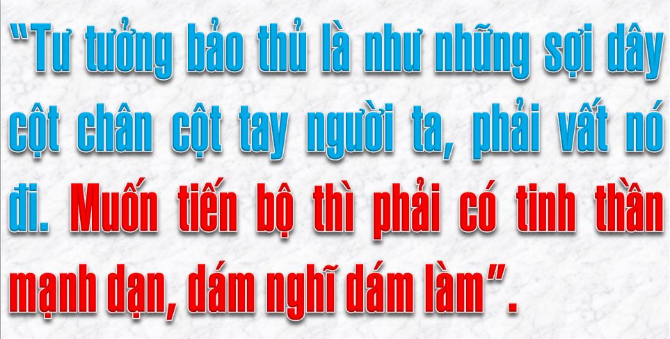 Thực tế, tư tưởng bảo thủ, trì trệ, không mạnh dạn, dám nghĩ, dám làm, dám chịu trách nhiệm ở một bộ phận cán bộ, đảng viên là lực cản đối với quá trình phát triển chung.
