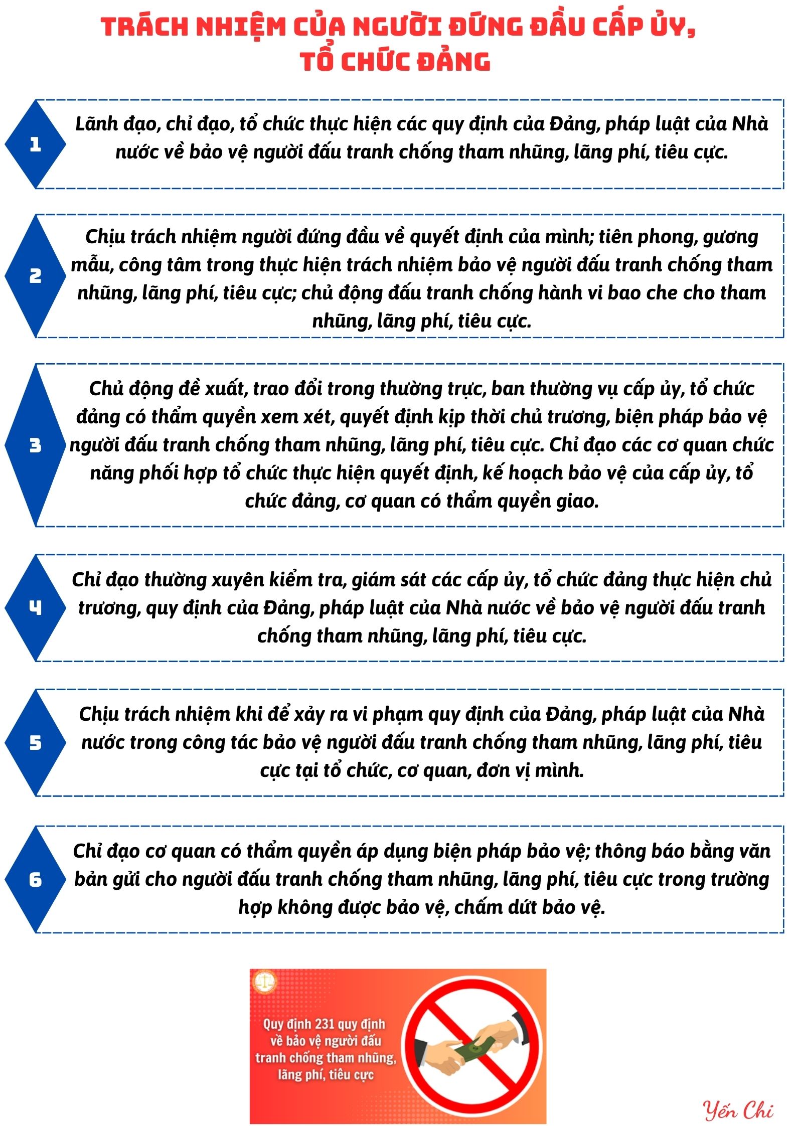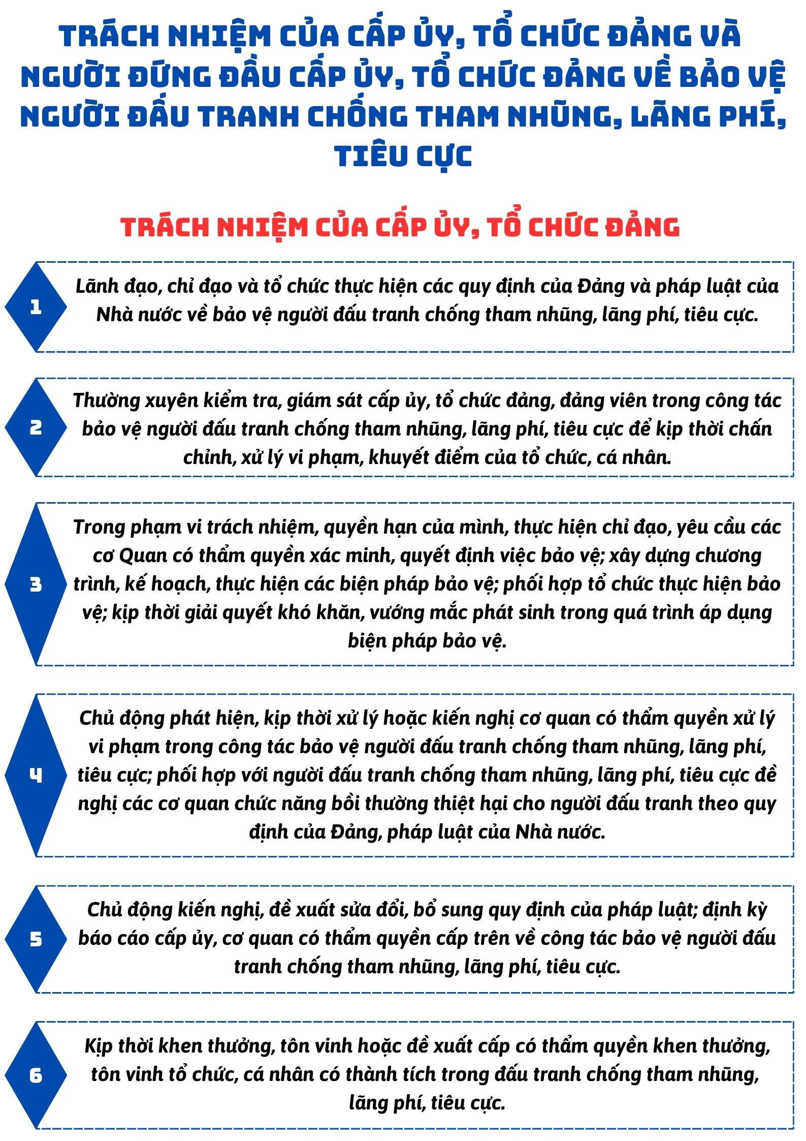 Trách nhiệm của cấp ủy, tổ chức Đảng và người đứng đầu cấp ủy, tổ chức Đảng về bảo vệ người đấu tranh chống tham nhũng, lãng phí, tiêu cực