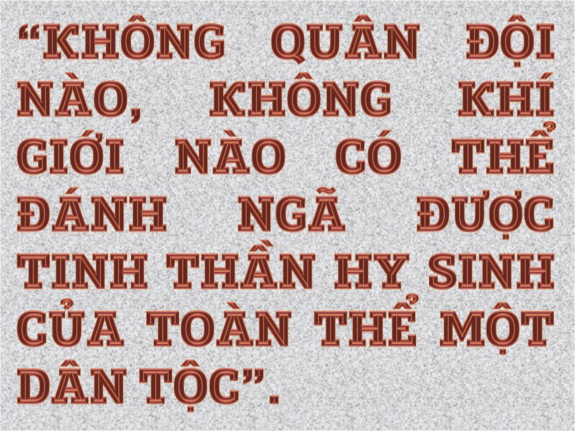Trong “Lời kêu gọi đồng bào Nam Bộ”, đăng trên Báo Cứu quốc, số 77, ngày 29 tháng 10 năm 1945. Người viết: Tâm trí tôi luôn luôn bên cạnh mấy triệu đồng bào quyết chiến đến giọt máu cuối cùng để bảo vệ cho nền độc lập Việt Nam, để tỏ rõ cho hoàn cầu biết rằng dân tộc Việt Nam đầy đủ tinh thần hy sinh chiến đấu.