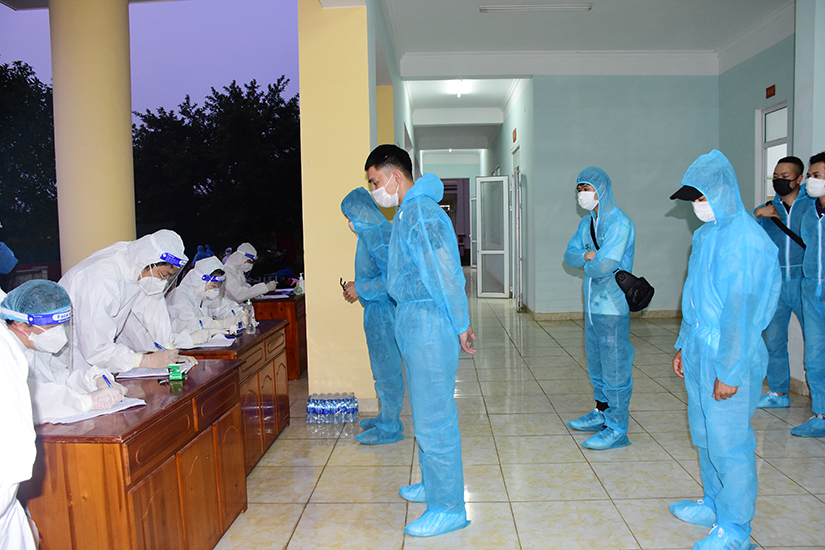 Tại buổi tiếp nhận, lực lượng quân đội, công an, y tế đã tổ chức tiếp nhận công dân theo đúng quy trình, phân loại các hình thức cách ly phù hợp. Đồng thời, hướng dẫn nội quy, quy định tại khu vực cách ly; lấy mẫu test nhanh phát hiện sớm trường hợp nghi nhiễm Covid-19 để có biện pháp xử lý kịp thời, không để dịch lây lan.
