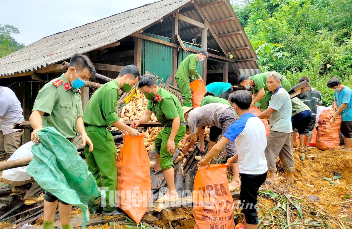 CBCS Công an huyện Na Hang giúp đỡ người dân thôn Nà Lũng, xã Khâu Tinh di dời tài sản,
