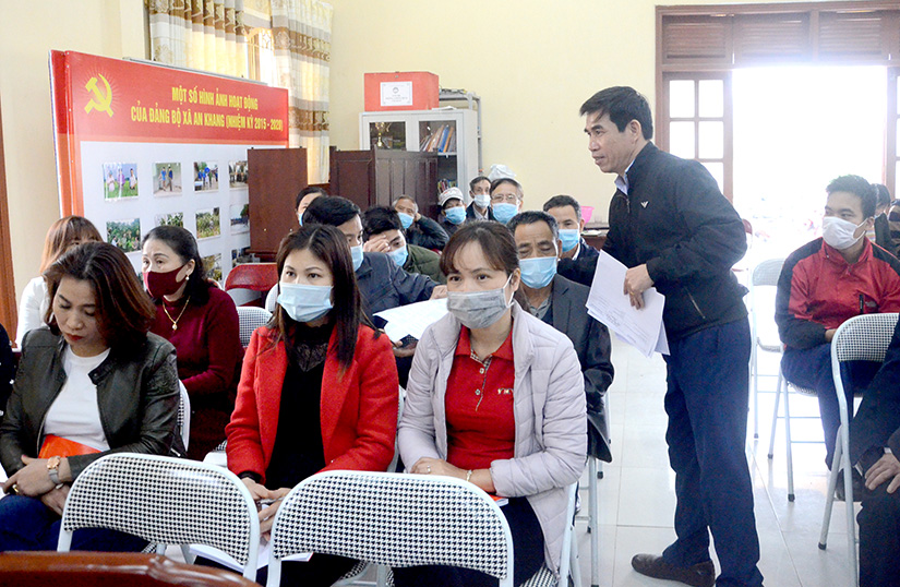 Cán bộ xã An Khang (thành phố Tuyên Quang) phát phiếu khảo sát của Ban Tuyên giáo Tỉnh ủy đối với cán bộ xã sau khi học tập, quán triệt Nghị quyết Đại hội Đảng bộ tỉnh lần thứ XVII trong tháng 2-2021.