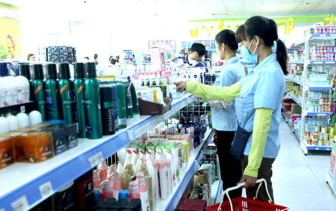 Người dân mua sắm hàng hóa tại Trung tâm Thương mại Long Bình An (TP Tuyên Quang).