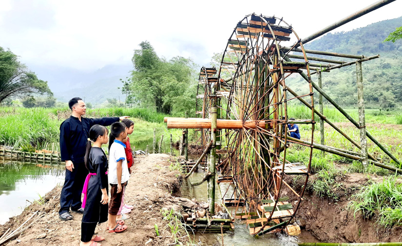 Người dân xã Thổ Bình (Lâm Bình) phục dựng cọn nước làm điểm nhấn thu hút khách du lịch.