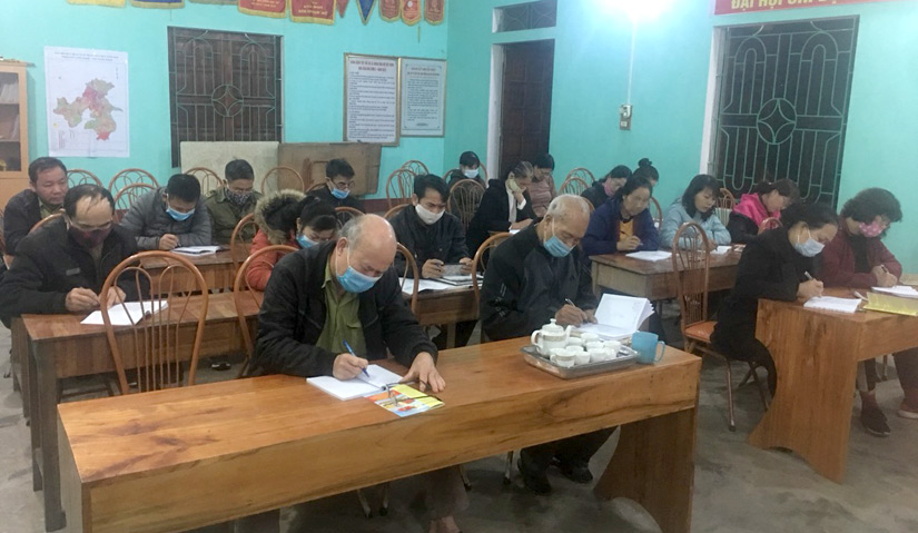 Một buổi họp của chi bộ xóm 3 triển khai phòng chống Covid-19.