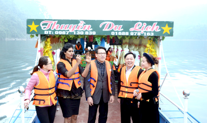 Du khách tham quan hồ sinh thái Na Hang. Ảnh: K.T