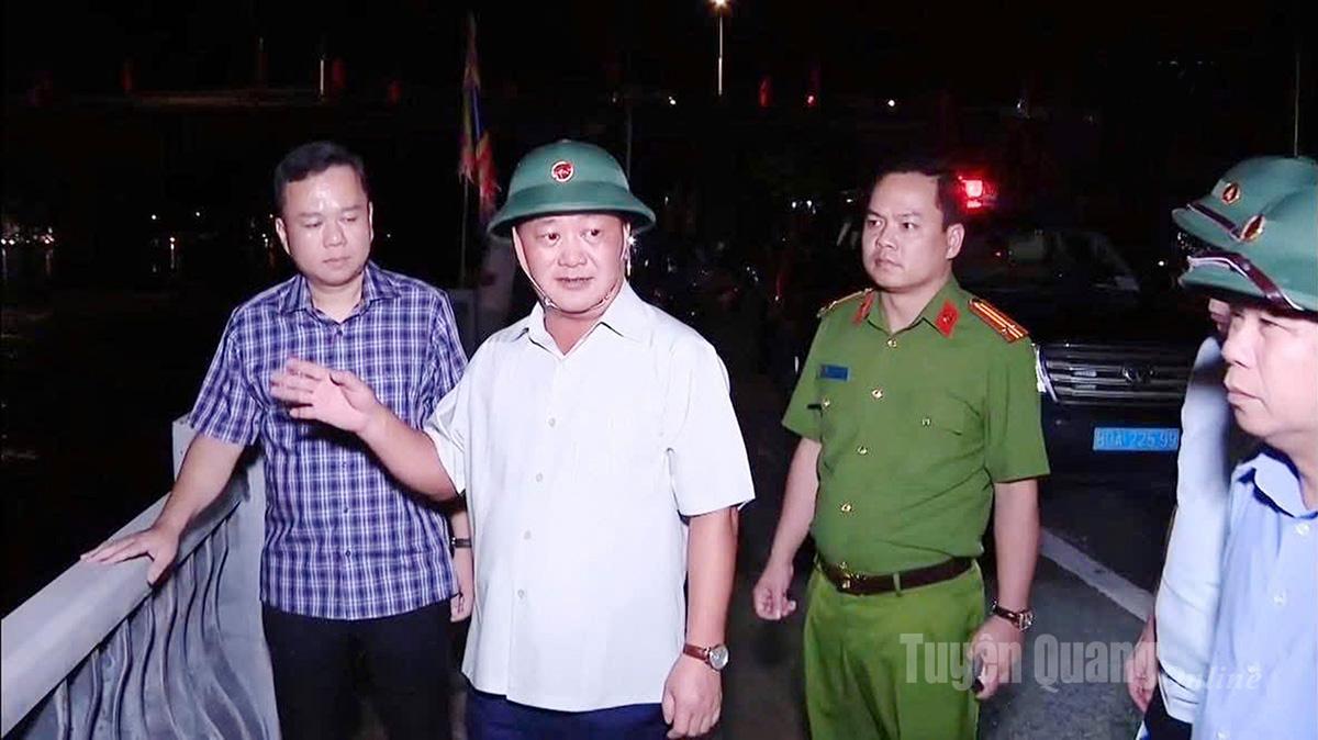 Trước tình hình diễn biến phức tạp của mưa lũ trên địa bàn tỉnh, đặc biệt là lũ cao bất thường trên phía thượng nguồn sông Lô, ngay trong đêm 30-9, đồng chí Hầu A Lềnh, Ủy viên BCH Trung ương Đảng, Bí thư Tỉnh ủy đã đi kiểm tra tình hình mưa lũ trên địa bàn phường Minh Xuân và phường Nông Tiến.