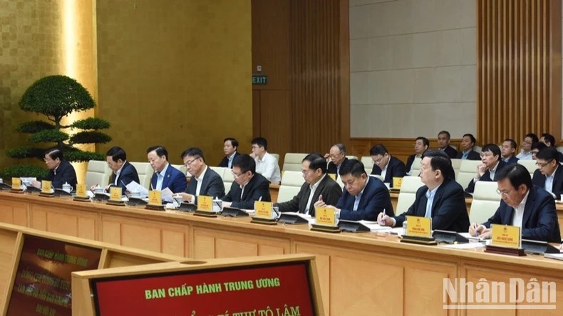 Tổng Bí thư Tô Lâm chủ trì cuộc làm việc với Tiểu ban Kinh tế-Xã hội Đại hội XIV của Đảng. (Ảnh: TRẦN HẢI)