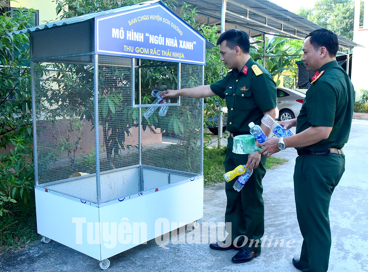 Mô hình “Ngôi nhà xanh” thu gom rác thải nhựa là cụ thể hóa thực hiện Chỉ thị 05 của cán bộ, đảng viên Ban CHQS huyện.