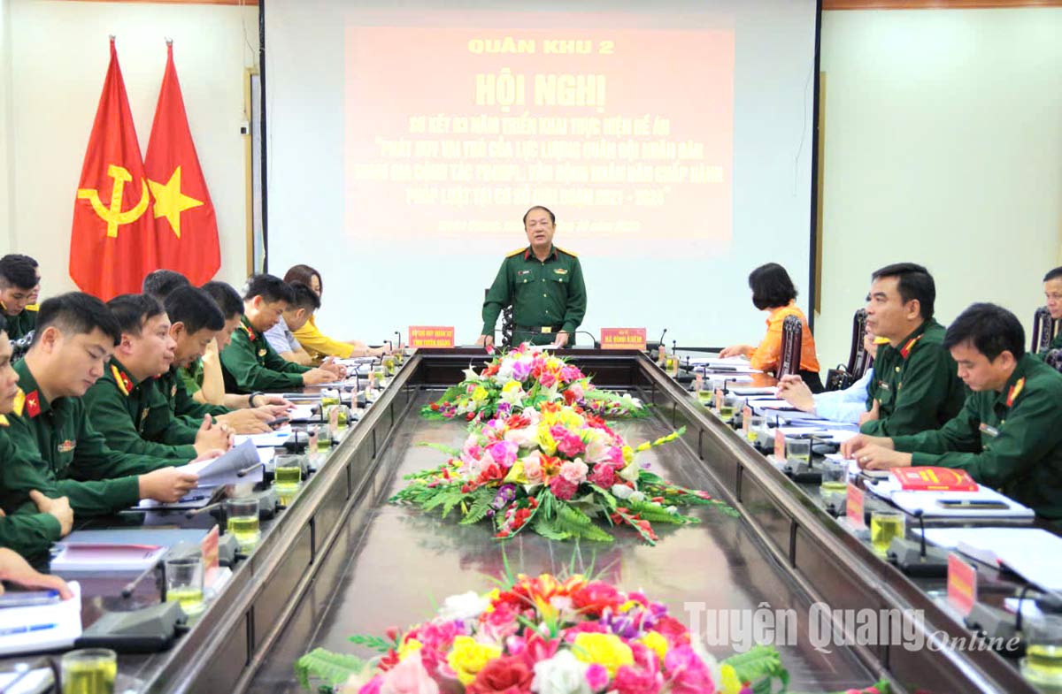 Chiều 24-10, Bộ Tư lệnh Quân khu 2 tổ chức Hội nghị trực tuyến sơ kết 3 năm thực hiện Đề án “Phát huy vai trò của Quân đội nhân dân tham gia công tác phổ biến, giáo dục pháp luật, vận động nhân dân chấp hành pháp luật tại cơ sở giai đoạn 2021 – 2024” (gọi tắt là Đề án 1371).