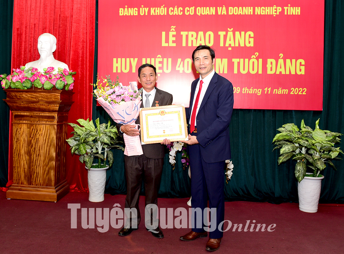 Đảng ủy Khối các cơ quan và doanh nghiệp tỉnh tổ chức trao Huy hiệu 40 năm tuổi Đảng cho các đảng viên