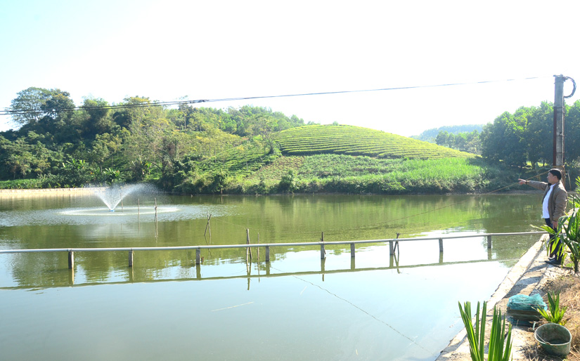 Người dân xã Nhữ Khê (Yên Sơn) ứng dụng công nghệ tiên tiến tự động tạo oxy trong nuôi trồng thủy sản.