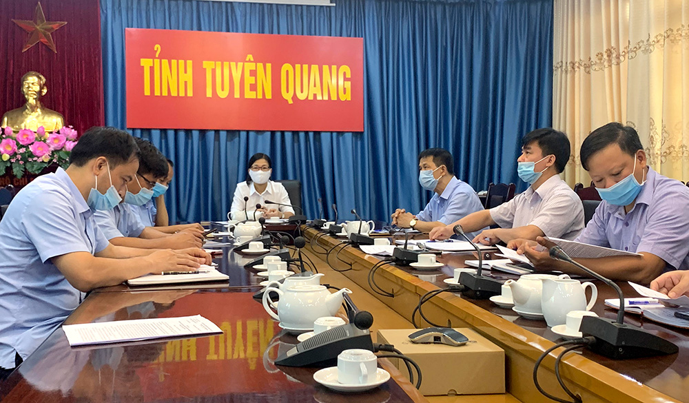 Các đại biểu dự hội nghị trực tuyến tại điểm cầu Tuyên Quang.