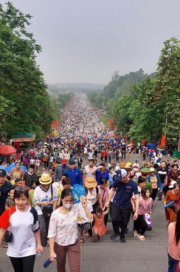 Hàng vạn người từ khắp nơi trở về Đền Hùng để tham quan và dâng hương