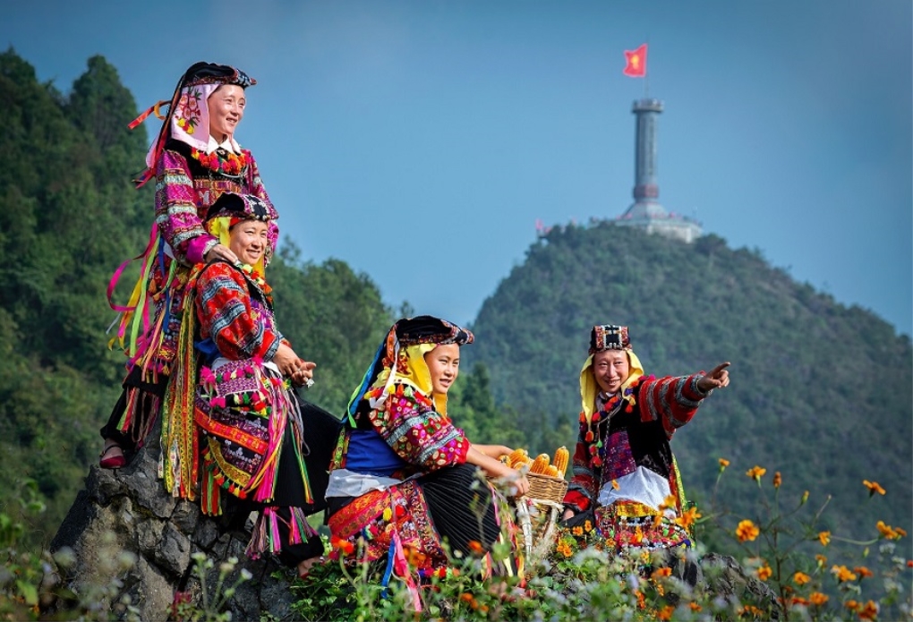 Người Lô Lô bên cột cờ Lũng Cú - Hà Giang. (Ảnh minh họa: Trần Bảo Hòa)